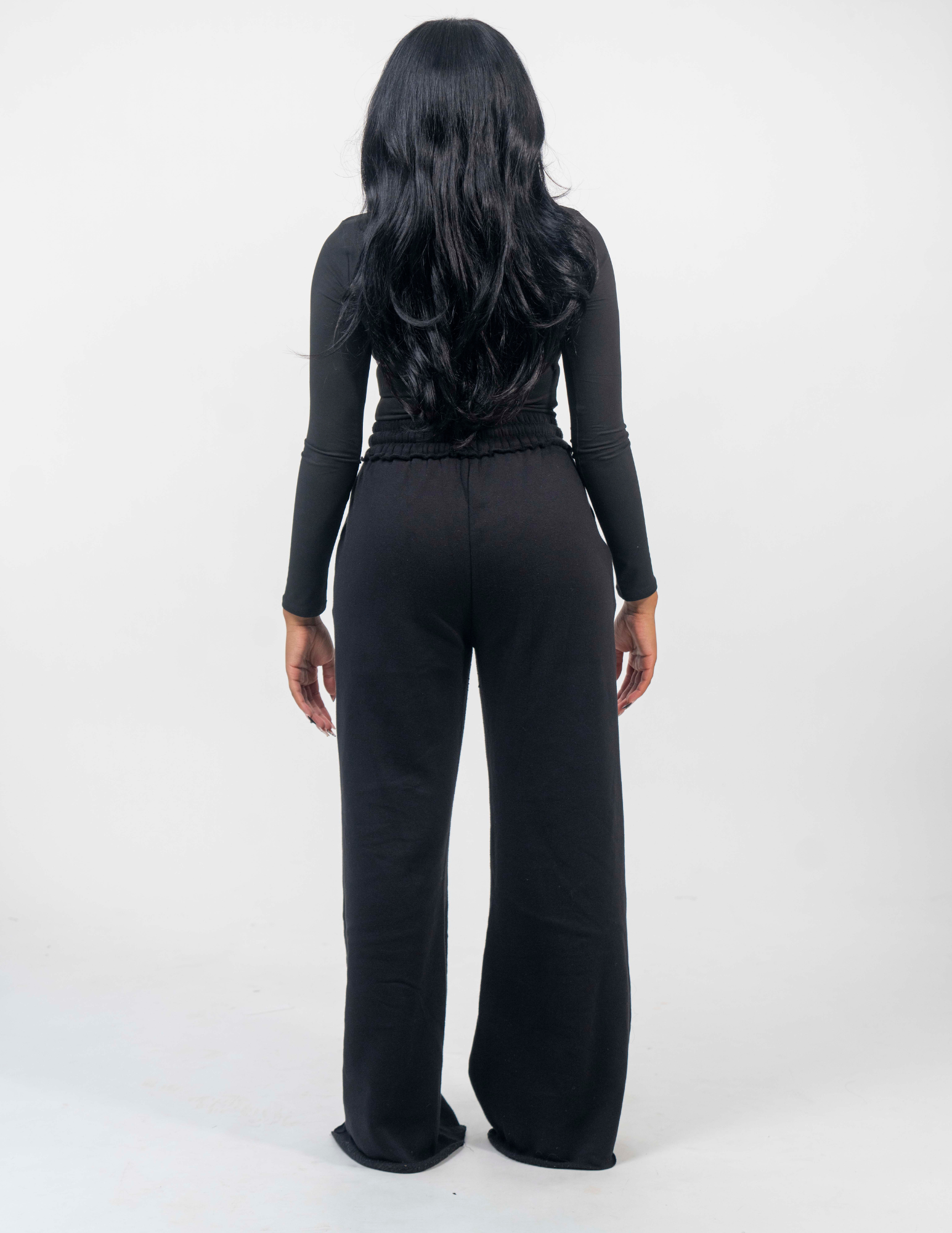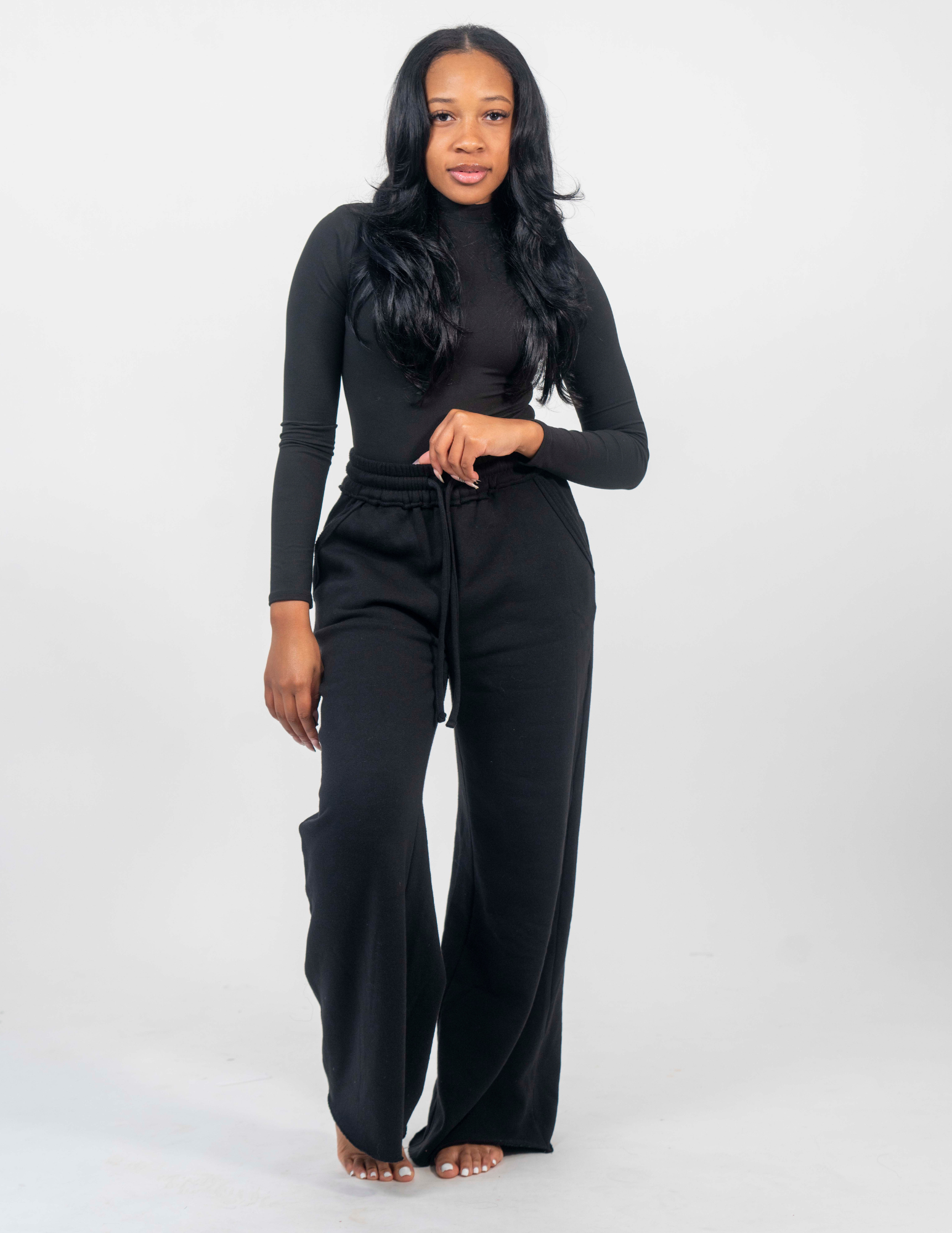 High-waist drawstring sweatpants crafted from a soft cotton-poly blend, featuring a wide-leg silhouette for relaxed comfort.